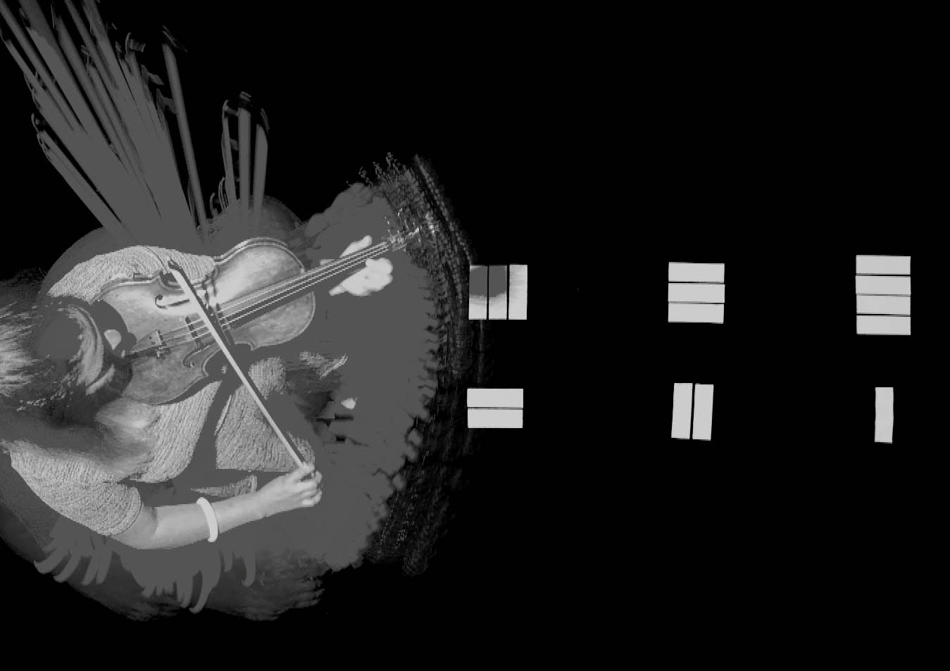 Violinstücke aus dem Barock und der Minimal Music treffen auf live montierte Filmaufnahmen und ergeben ein rhythmisches Spannungsfeld. Das Werk zeigt sich gleichsam dem Ohr und dem Auge und eine Verschmelzung der Sinne wird unvermeidlich – das Gehörte wird gesehen und das Gesehene wird gehört. Es wird auch deutlich wie unterschiedlich die beiden Sinne funktionieren. Das Auge muss eine Auswahl treffen was es erblicken möchte, das Ohr erfasst den ganzen Raum. Das Bild zeigt zudem andere Kompetenzen beim Vermitteln von Strukturen und Ordnungen als der Ton. Die Visualisierung soll helfen, die musikalischen Rhythmusstrukturen zu verdeutlichen. Dieses wird an zwei unterschiedlichen Konzepten der Repetition behandelt.